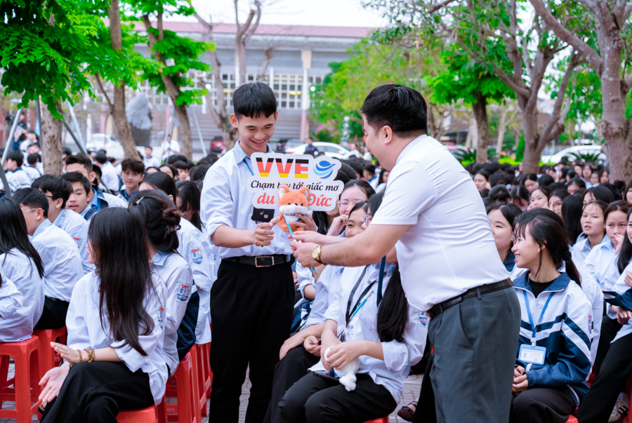 Bên cạnh đó, chương trình còn có sự tham gia chia sẻ của anh Trần Phú Hiệu – Chủ tịch & Tổng Giám đốc Công ty Du học VITA VINA. Với kinh nghiệm thực tiễn trong lĩnh vực tư vấn du học, anh đã mang đến cho học sinh cái nhìn đa chiều hơn về các lựa chọn sau khi tốt nghiệp THPT. Không chỉ gói gọn trong con đường đại học truyền thống, các em còn có thể cân nhắc những hướng đi mới như du học, du học nghề tại các quốc gia phát triển như Đức, Anh, Úc, Mỹ, Canada, Hàn Quốc… với nhiều chương trình học bổng hấp dẫn và cơ hội việc làm rộng mở sau khi tốt nghiệp.